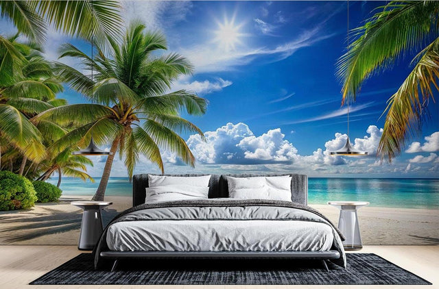 Cette fresque murale plage tropicale apporte le paradis à la maison avec une vraie profondeur.
