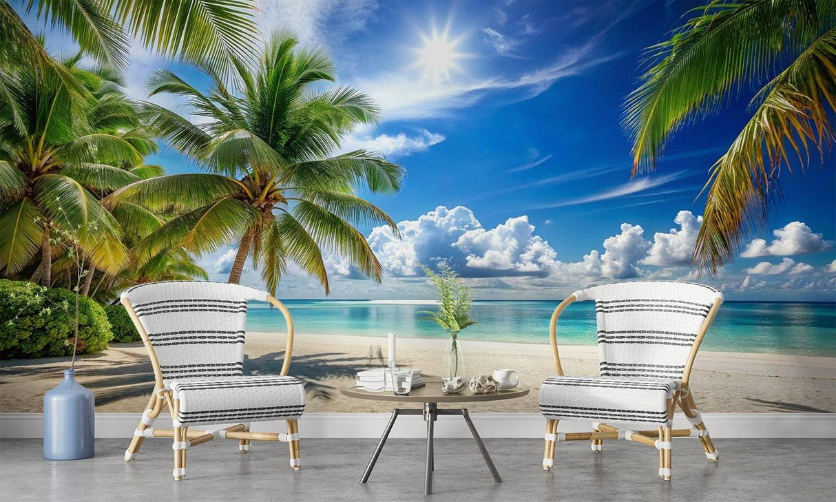 Papier Peint Mural Plage Tropicale | Palmiers du Paradis et Océan Turquoise