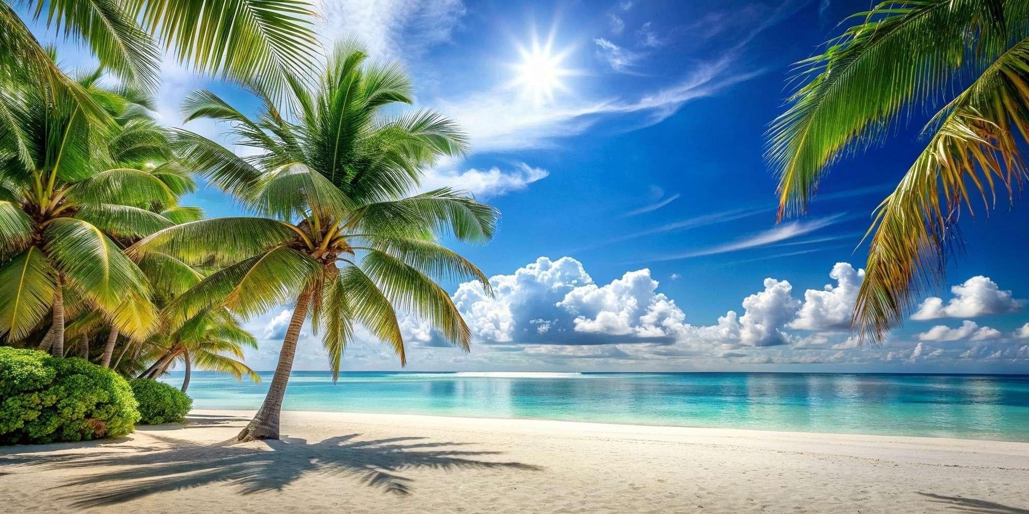 Fresque murale Paradis de plage avec palmiers