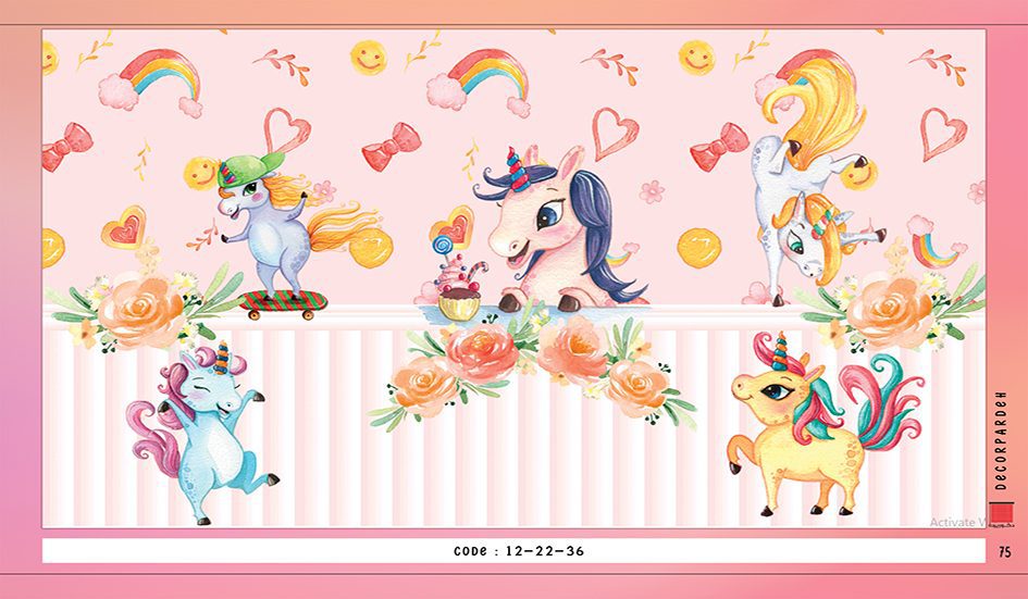 Ce papier peint fantaisie licorne crée un monde enchanteur rempli de personnages fantaisistes et de détails délicieux. Sur un fond rose doux, de charmantes licornes aux crinières flottantes gambadent aux côtés d'éléments décoratifs comprenant des arcs-en-ciel, des cœurs et de délicates roses corail. Le papier peint licorne magique présente un équilibre parfait entre illustrations ludiques et accents floraux doux, créant un motif sans couture qui capture l'émerveillement de l'enfance.