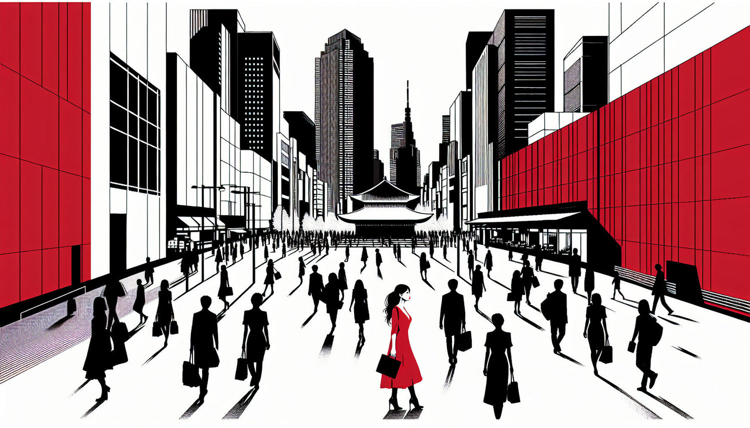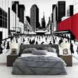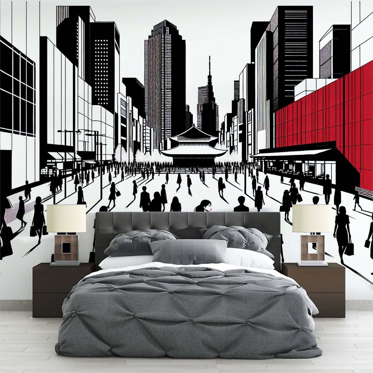 Papier Peint Mural Japonais Urbain | Vie Urbaine Moderne avec Accent Rouge