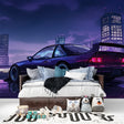 Papier Peint Mural Voiture de Sport | Skyline Violet de la Ville Nocturne