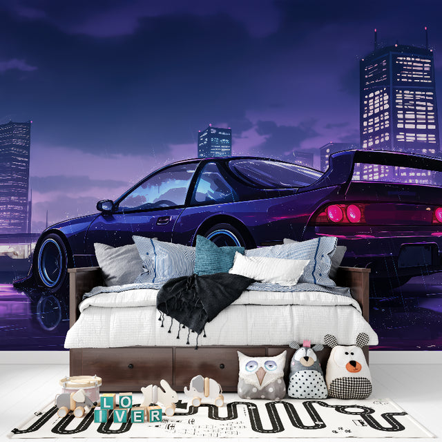 Ce papier peint mural de voiture de sport fait vibrer le pouls de la ville.