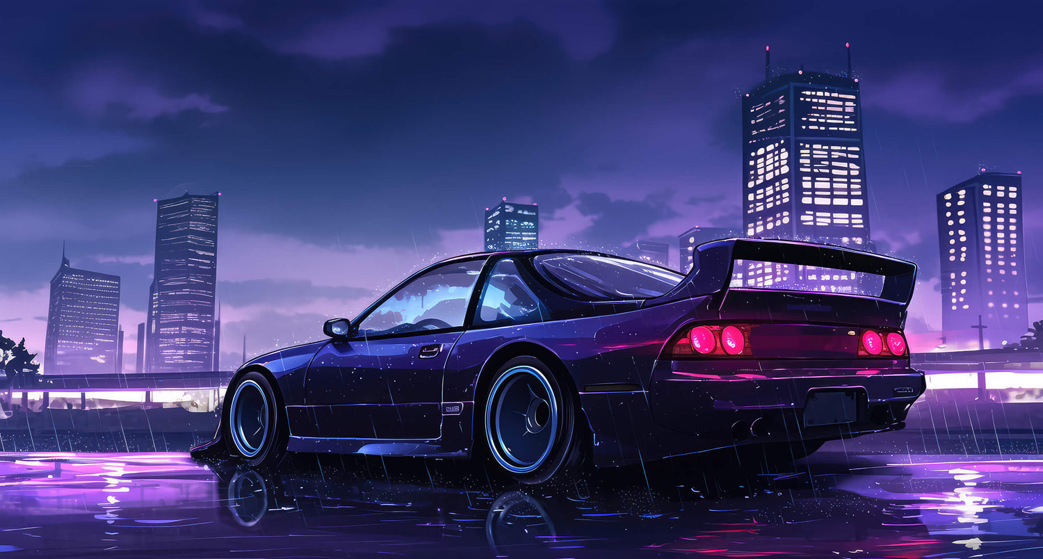 Ce papier peint voiture de sport présente un véhicule de performance élégant contre un paysage urbain fascinant baigné dans un crépuscule violet profond. La finition métallique de la voiture de sport personnalisée brille sous les lumières de la ville, tandis que les gratte-ciel modernes percent le ciel nocturne avec leurs fenêtres illuminées. Le papier peint nuit urbaine crée une atmosphère sophistiquée avec sa palette riche de violets profonds, de bleus et de touches de rose néon reflétées sur le trottoir mouillé.