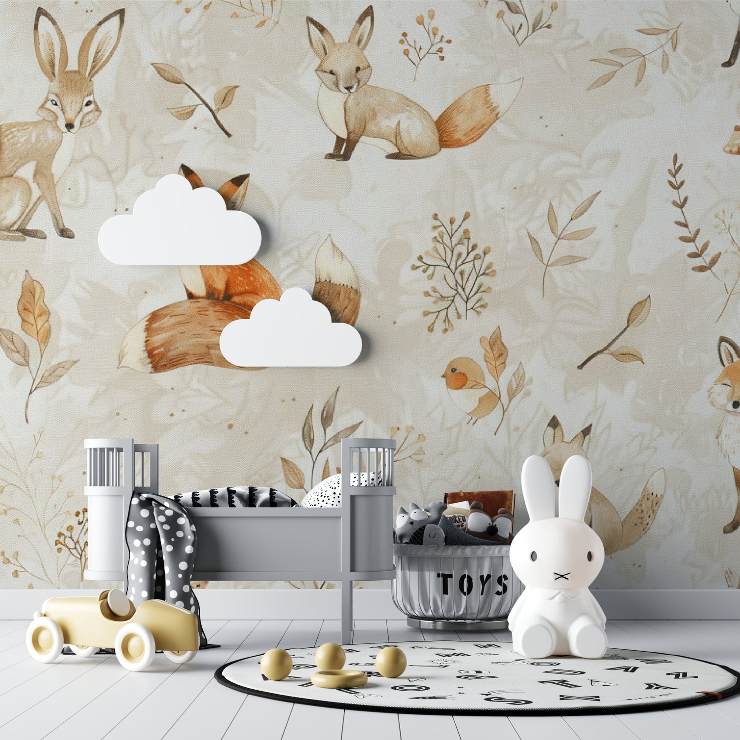 La nostra dolce volpe e i suoi amici creano uno sfondo delicato per dolci sogni e momenti di gioco felici.