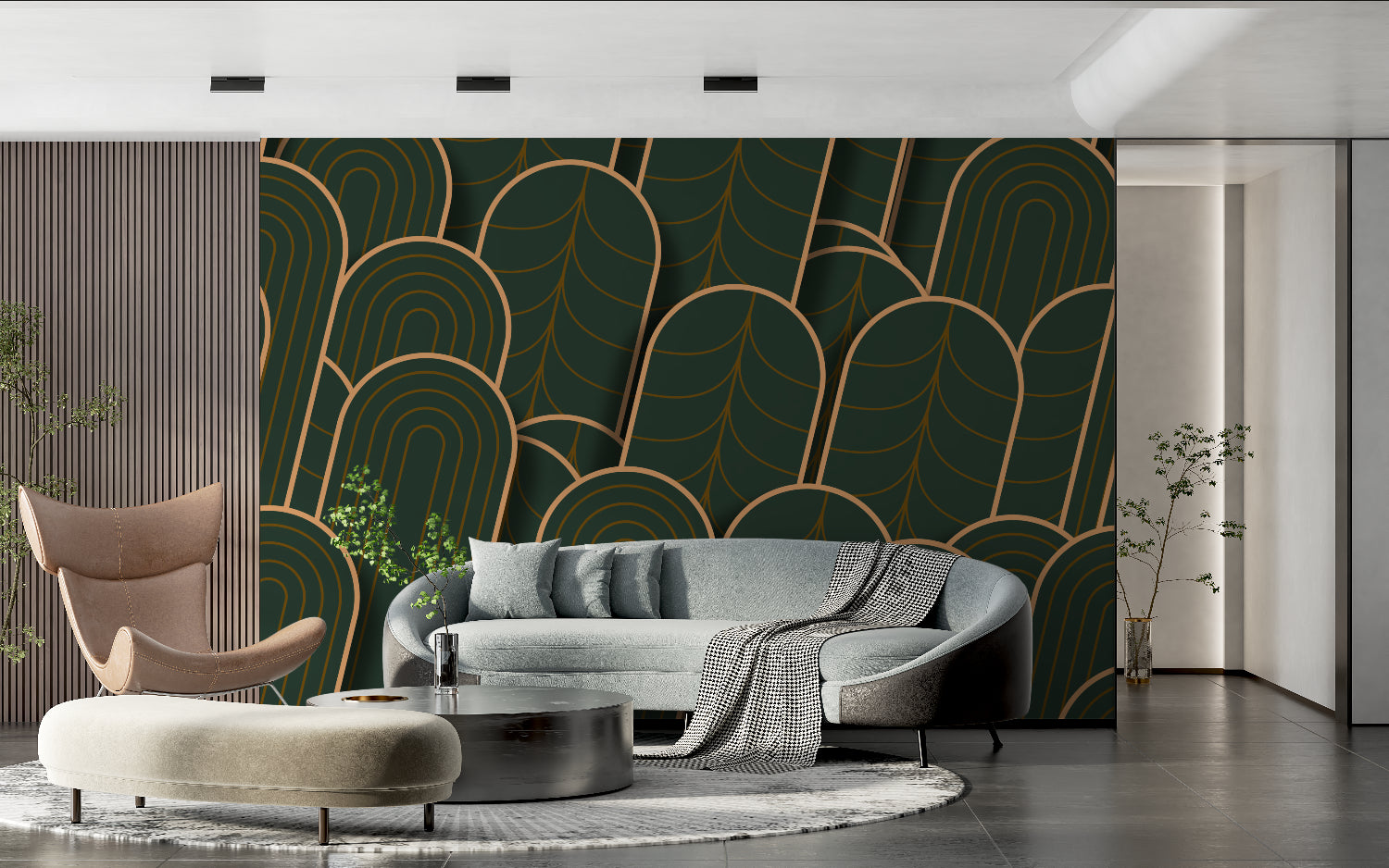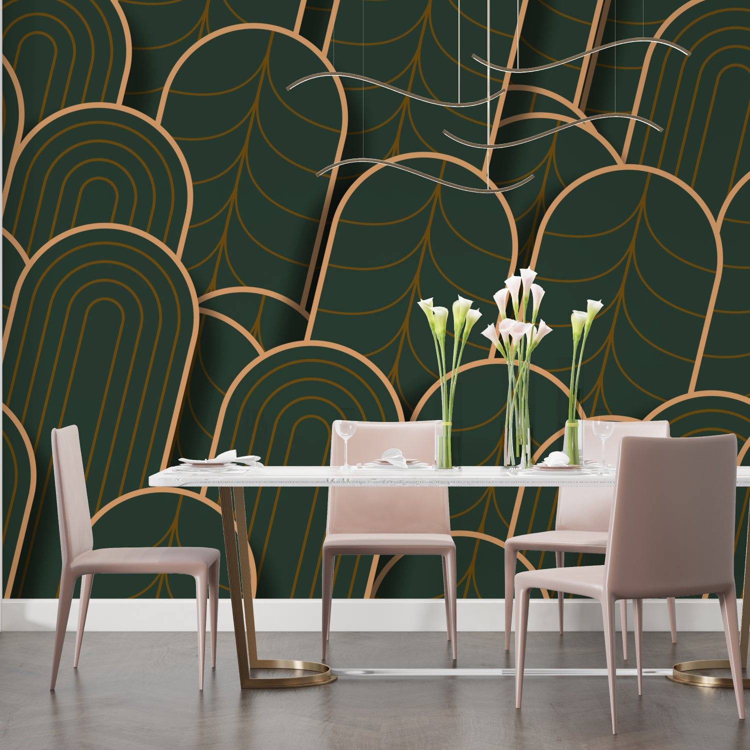 Carta da Parati Murale Art Deco | Motivo Geometrico Verde e Oro