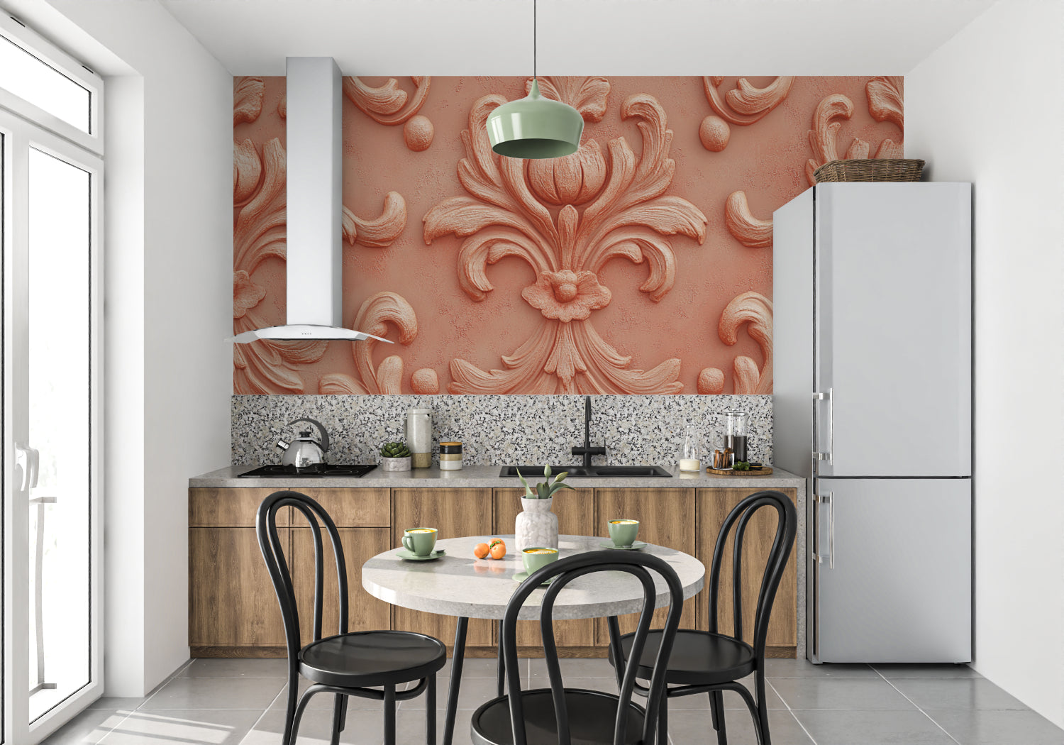 Il murale con motivo damascato porta la bellezza classica nelle case moderne.