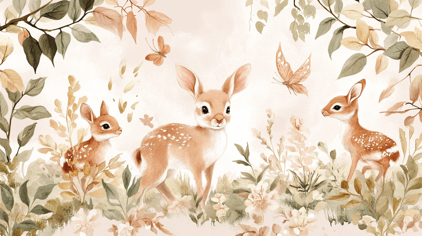 Carta da Parati Murale Animali della Foresta | Morbidi Cervi del Bosco e Farfalle
