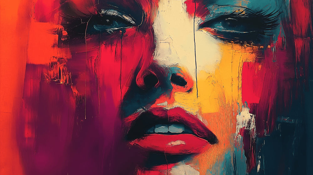 Carta da Parati Murale Astratta | Ritratto Espressivo in Colori Vivaci