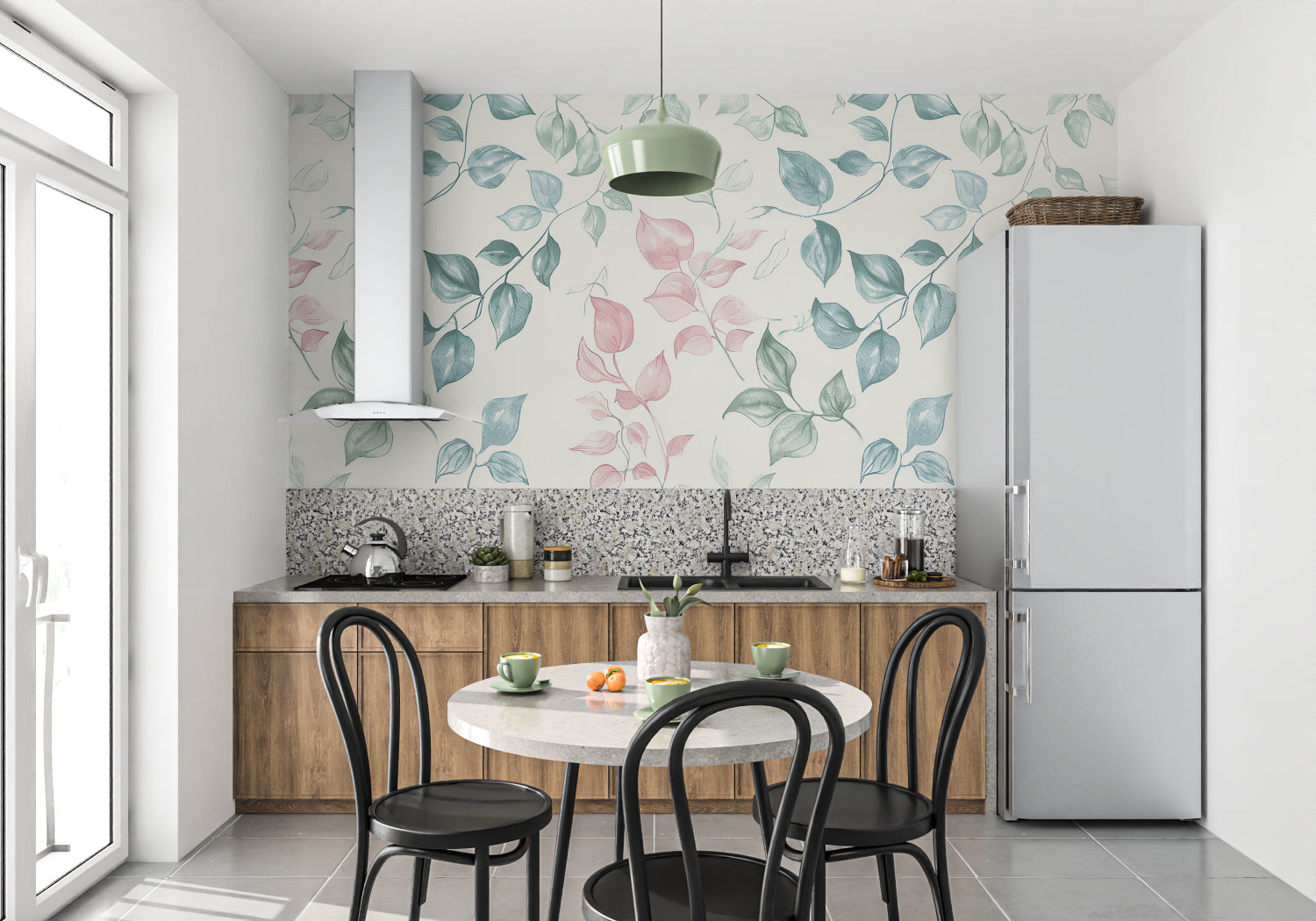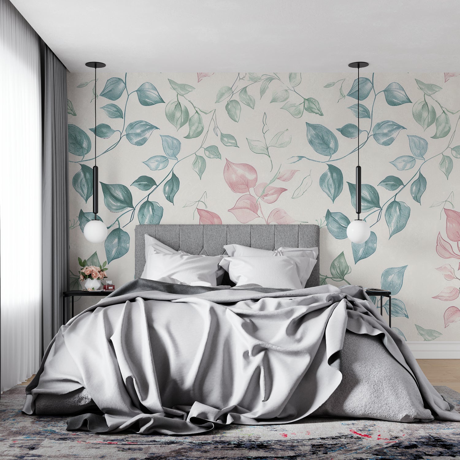 Questa carta da parati con foglie ad acquerello porta un movimento delicato alle tue pareti.