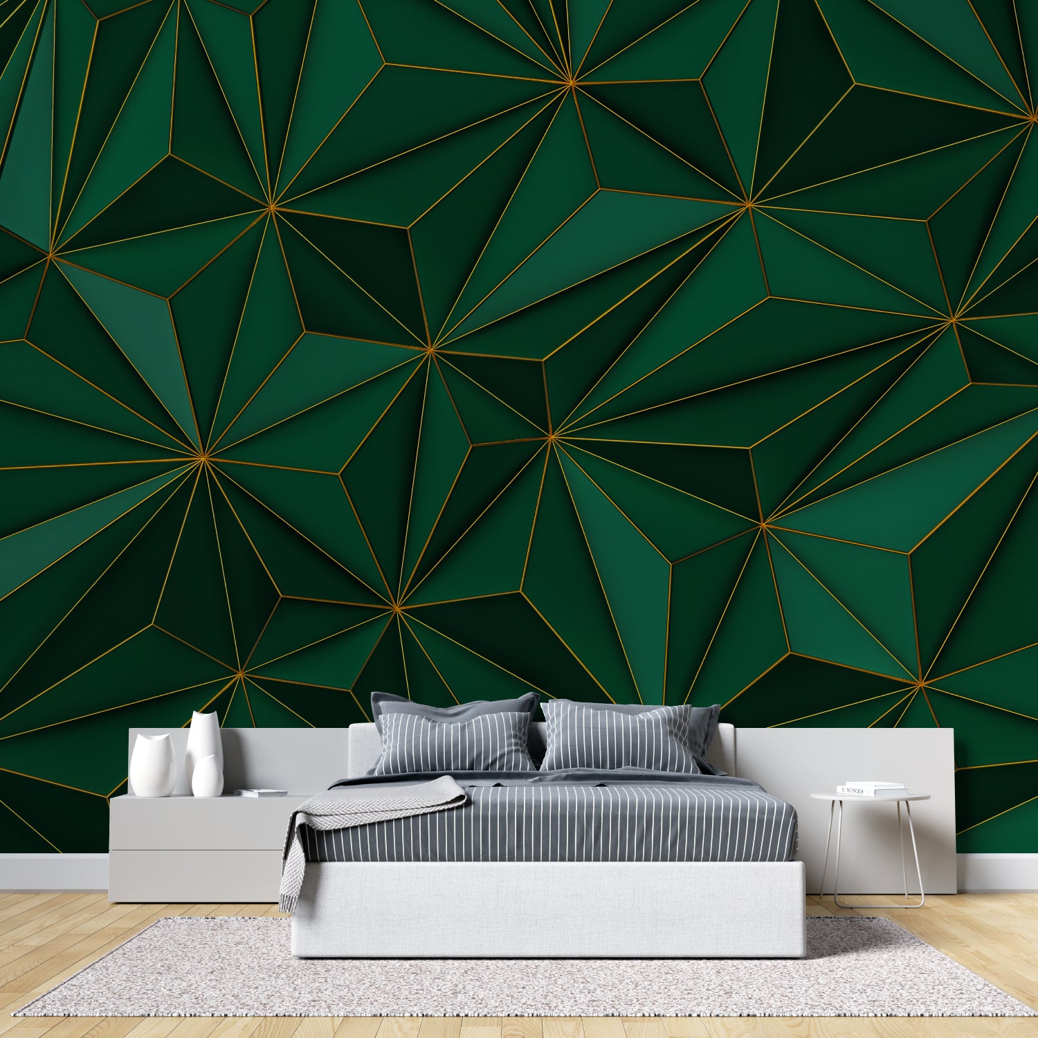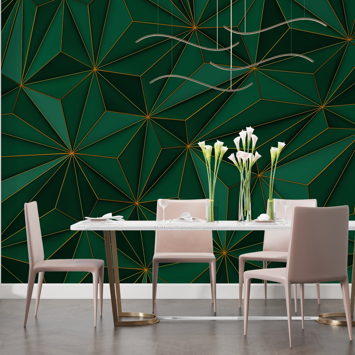 Carta da Parati Murale Geometrica | Design 3D Verde e Oro