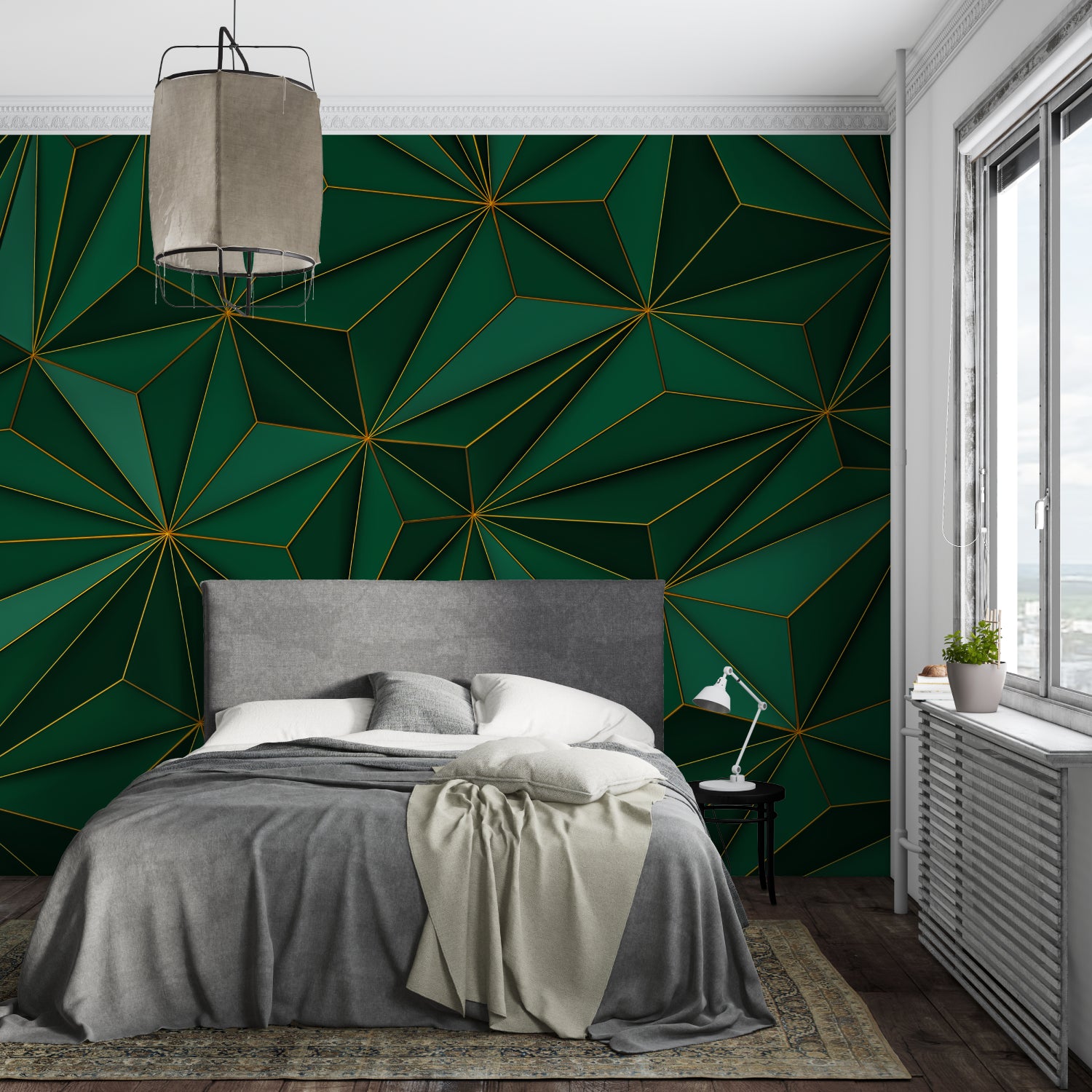 Murale d'arte da parete geometrico verde e oro