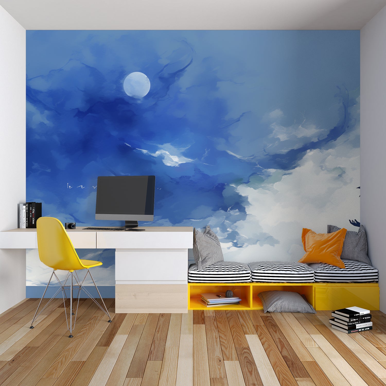Carta da Parati Murale Cielo | Luna Blu e Nuvole Bianche