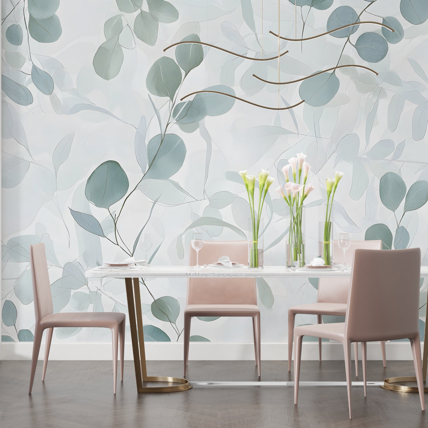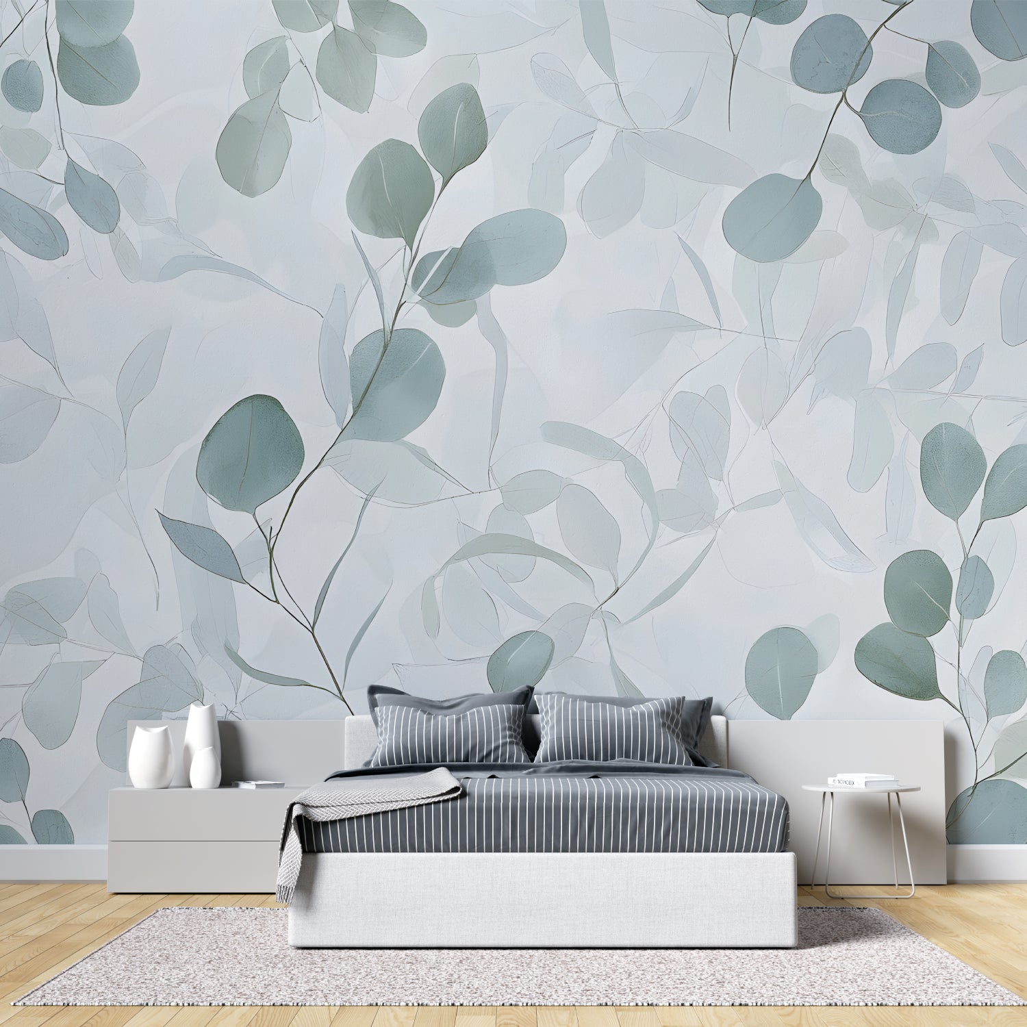 Carta da Parati Murale Eucalipto | Foglie Acquerello Verde Chiaro
