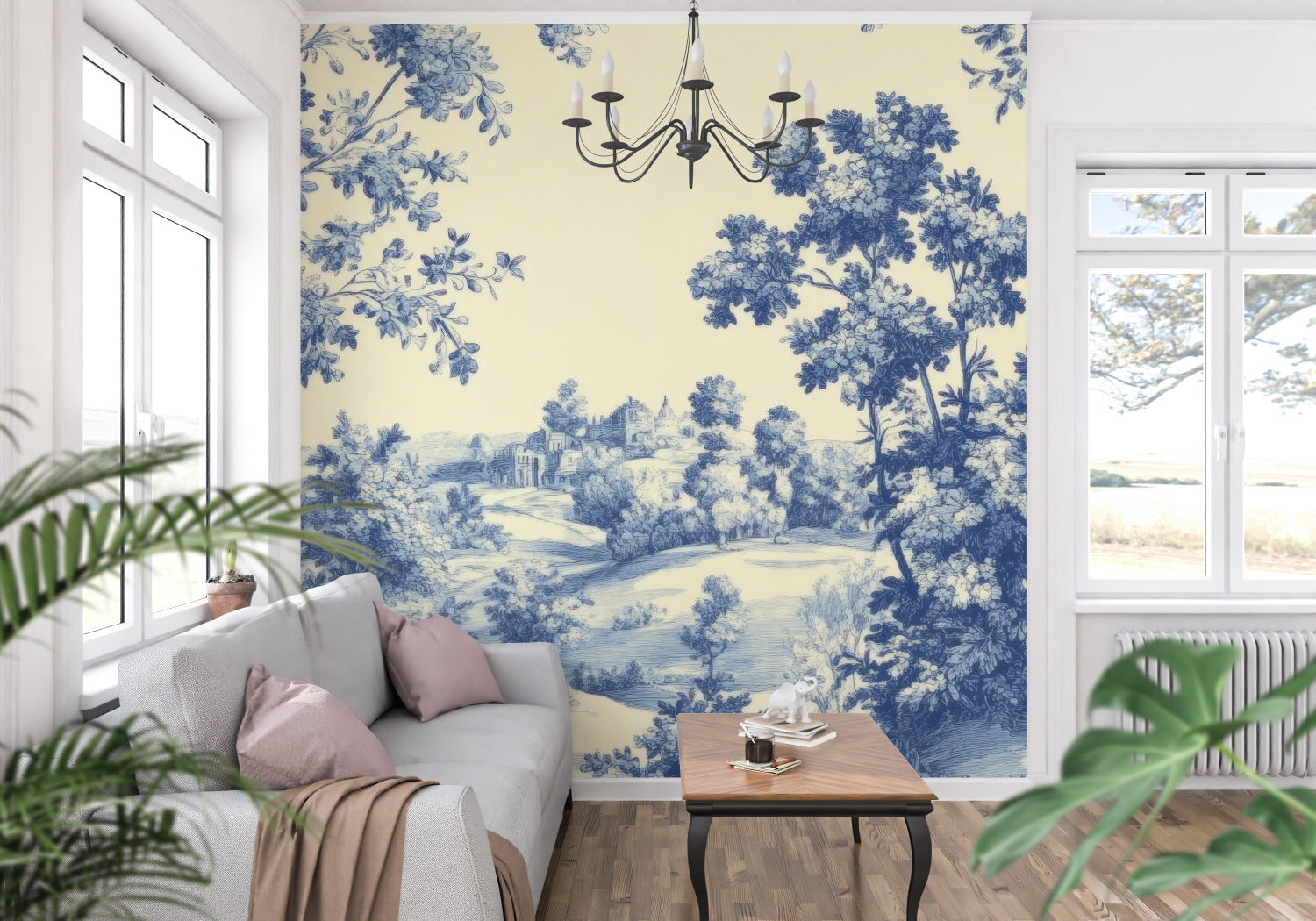 Carta da Parati Murale Toile Francese | Design Paesaggio Pastorale Blu
