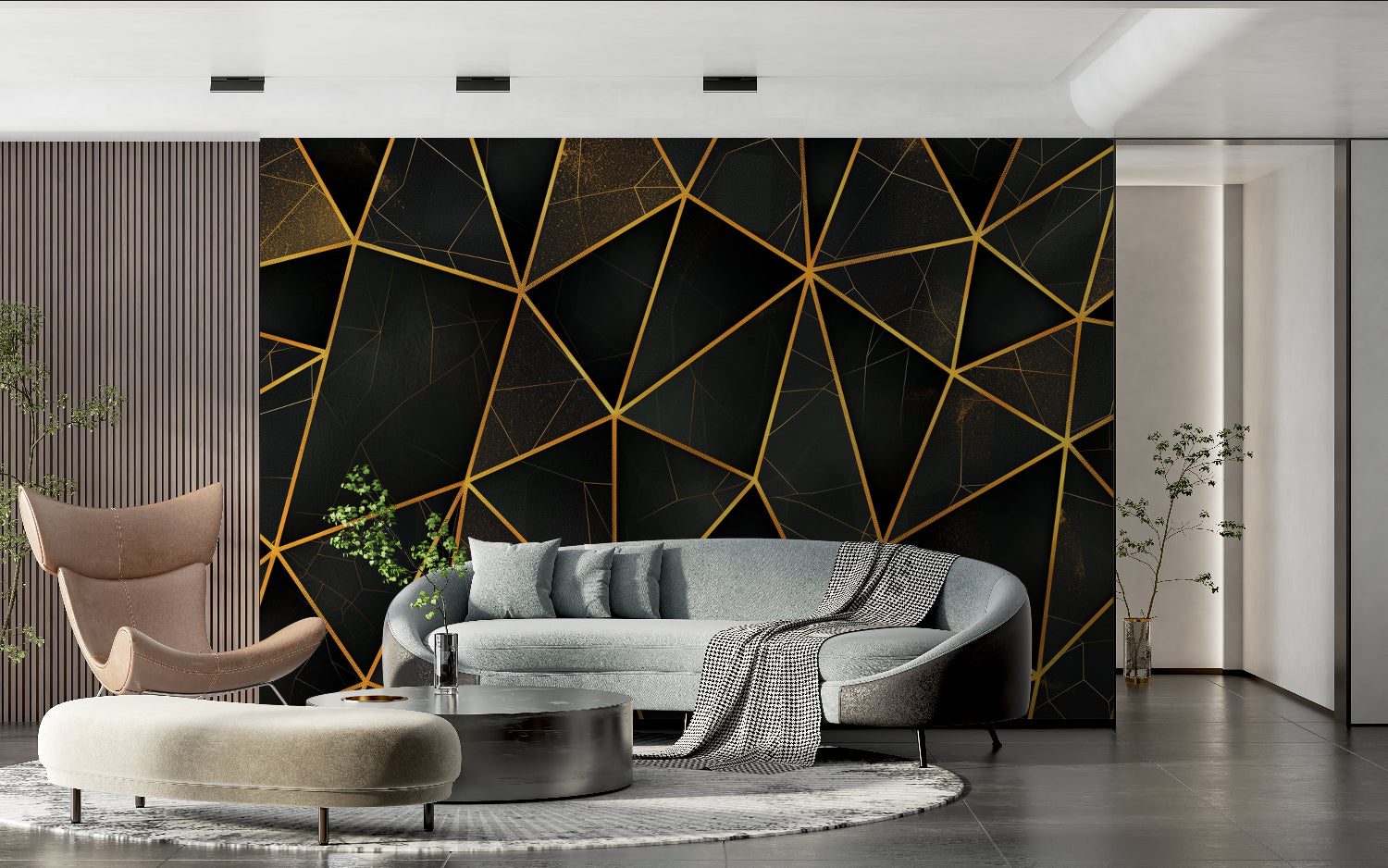 Carta da Parati Murale Geometrica | Motivo Art Deco Nero e Oro