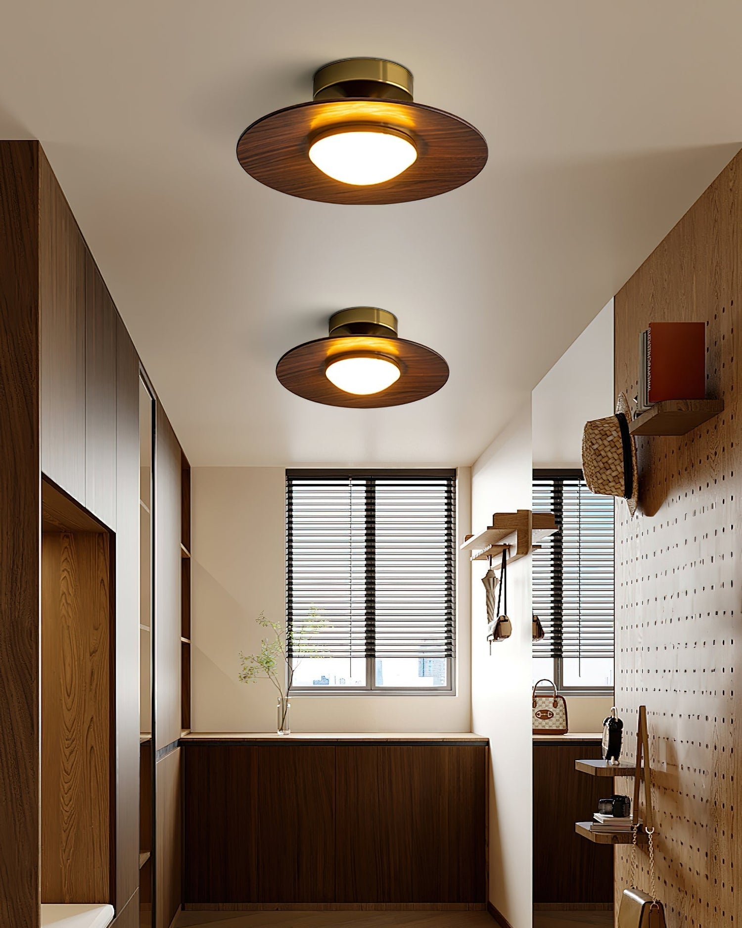 Lampada da soffitto moderna | Design a disco in legno di noce e oro