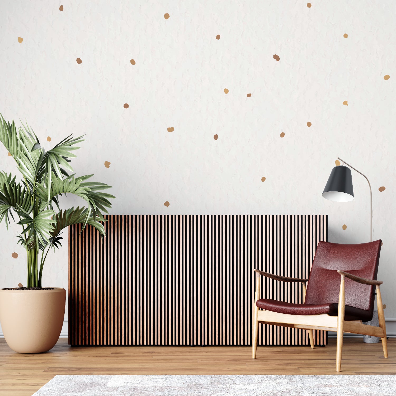 Questa carta da parati a pois dorati cattura la luce magnificamente durante tutto il giorno.