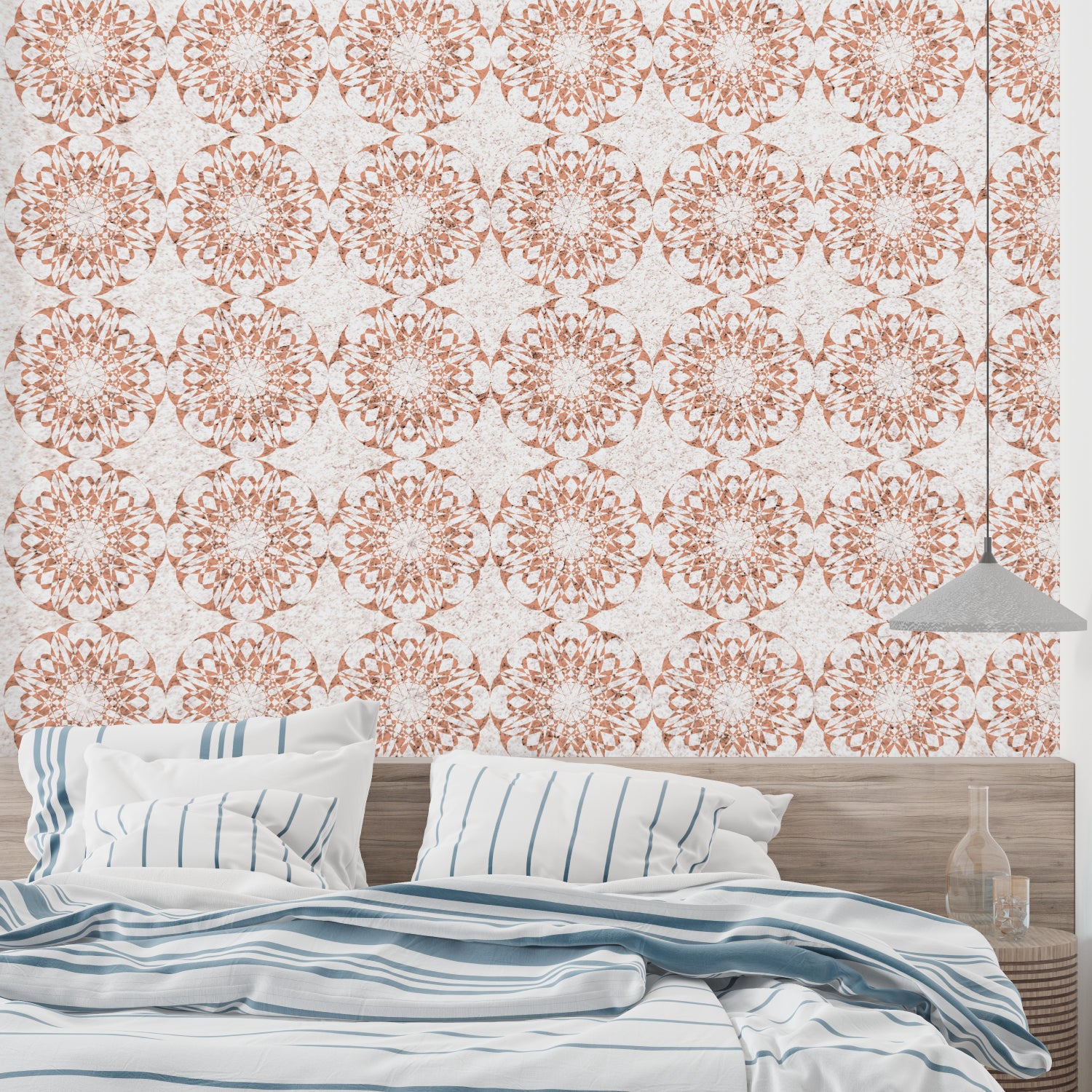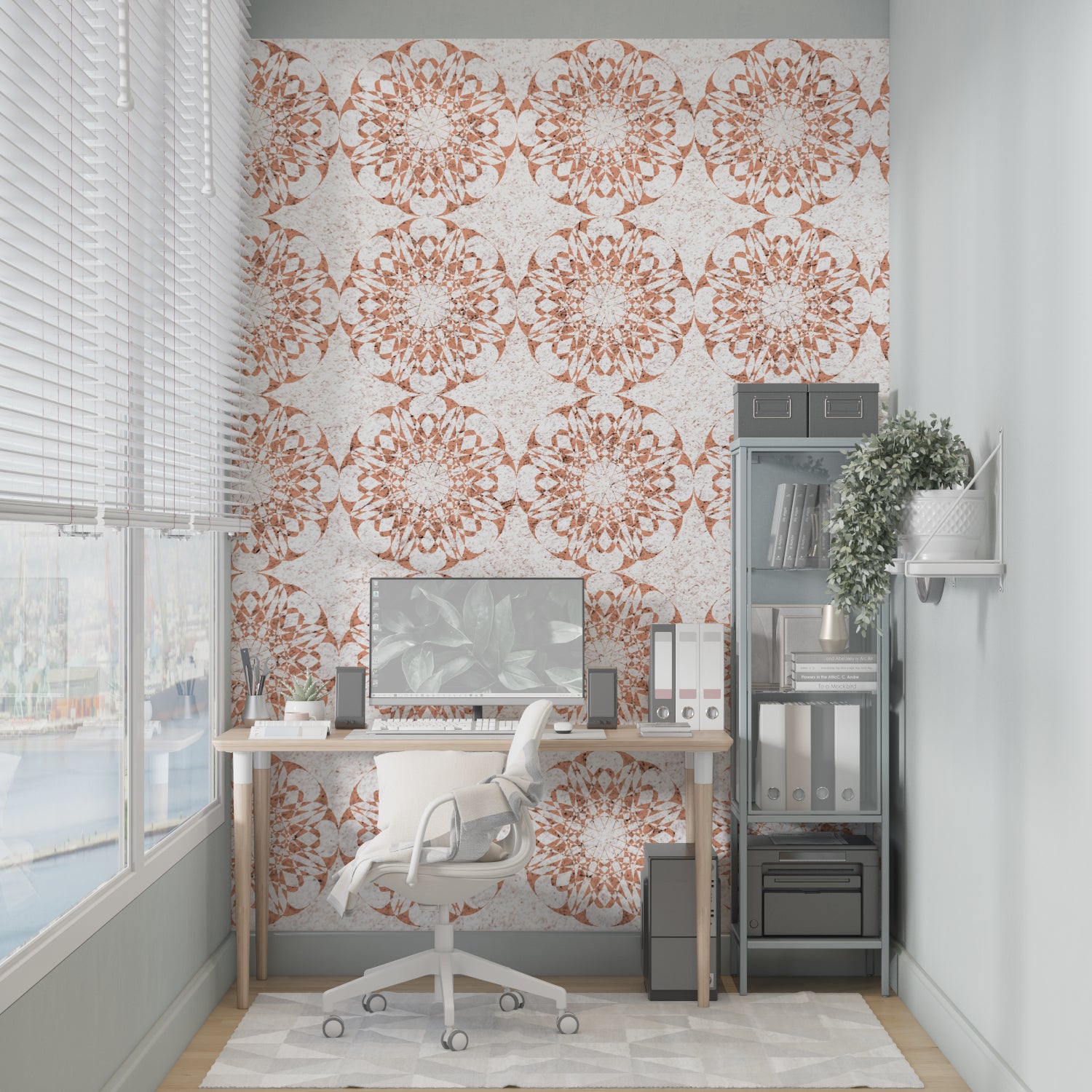 Il design fluente del mandala rende questa carta da parati in terracotta un piacere da vivere.