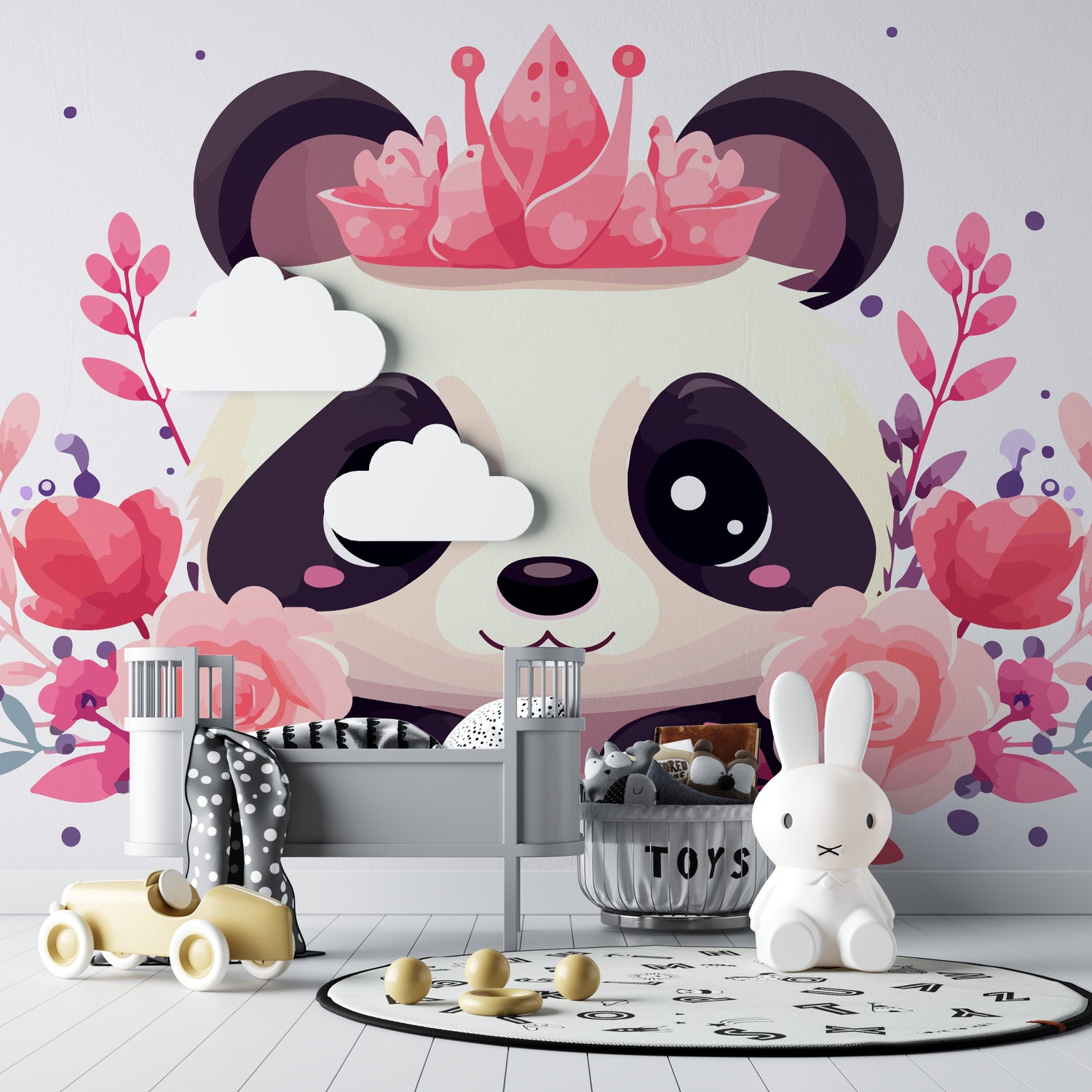 Carta da Parati Murale Principessa Panda | Design Corona Floreale Rosa