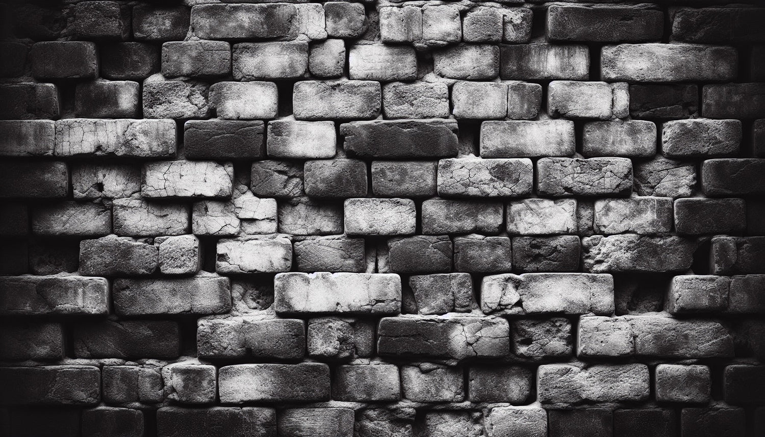 Deze zwarte bakstenen behang toont een meesterlijk vervaardigd monochromatisch ontwerp dat de rauwe essentie van verweerde stenen architectuur vastlegt. Elke baksteen heeft ingewikkelde texturen en gevarieerde grijstinten, wat een boeiend samenspel van licht en schaduw creëert. Het industriële bakstenen behang toont authentiek ogende scheuren, ruwe oppervlakken en natuurlijke slijtagepatronen die diepte en karakter aan de algehele compositie geven.