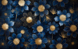 Bloemen Behang | Marineblauw en Goud Art Deco Ontwerp