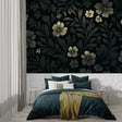 Bloemen Muurbehang | Zwart en Goud Elegant Ontwerp