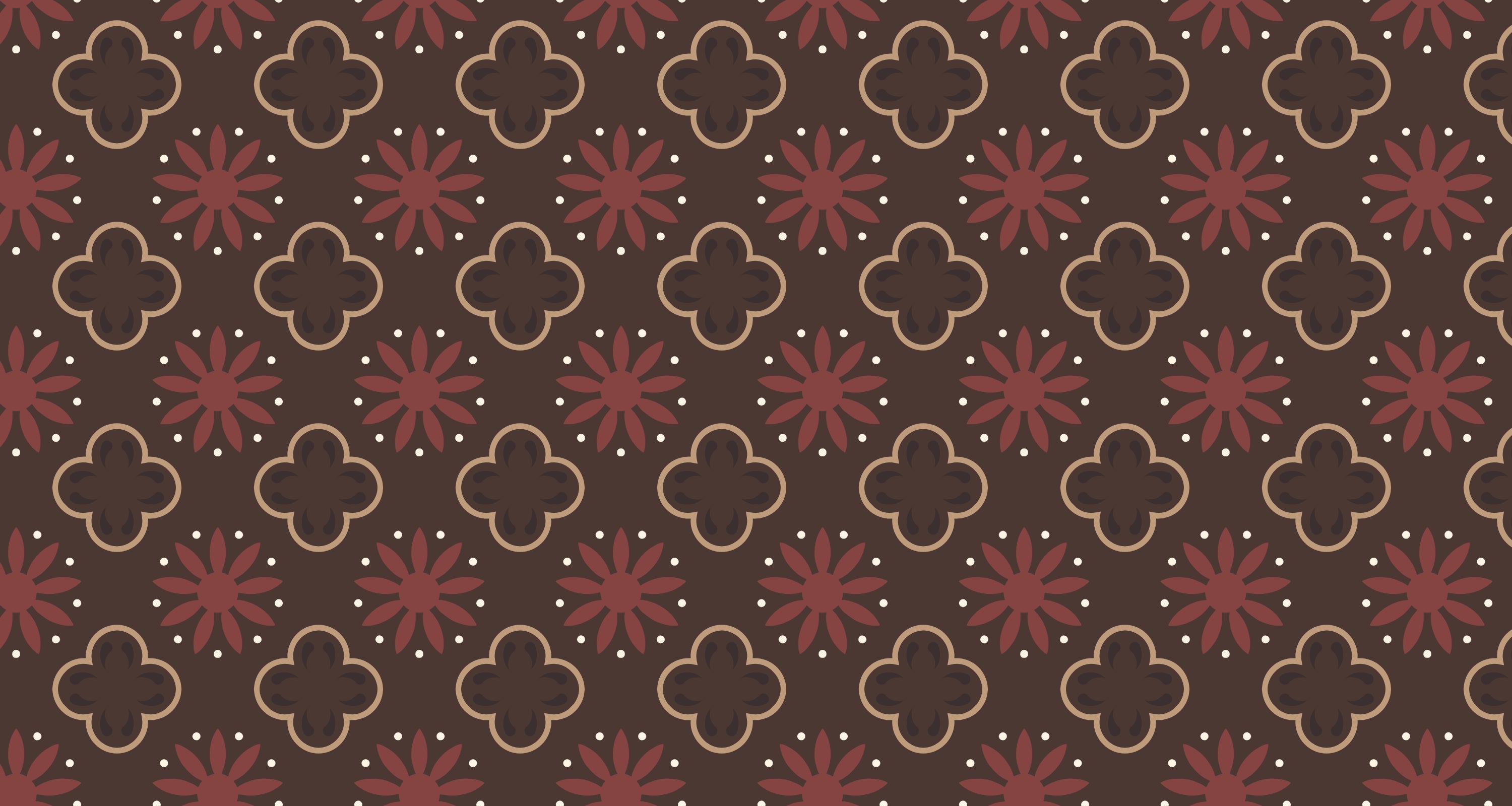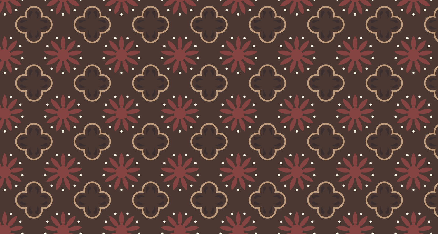 Dit verfijnde geometrische patroonbehang toont een elegante wisselwerking van quatrefoil-motieven en gestileerde bloemmotieven. Tegen een rijke chocoladebruine achtergrond bevat het ontwerp terracotta-rode madeliefachtige bloemen en goud-beige gotische quatrefoils, afgewisseld met delicate witte stippen. Het art deco muurschildering behang creëert een betoverend ritme door zijn perfect uitgebalanceerde herhalende patroon.