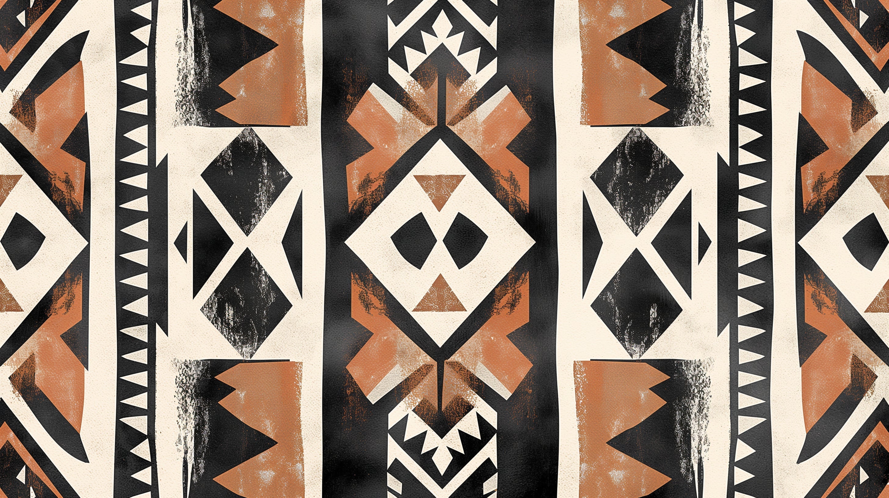 Geometrisch Mural Behang | Tribaal Terracotta en Zwart Patroon