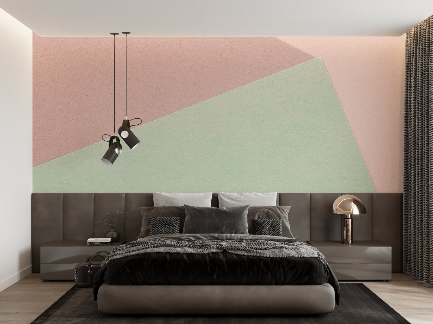 The gentle blend of mint and pink tones creates a modern pastel wall design that feels fresh and inviting.