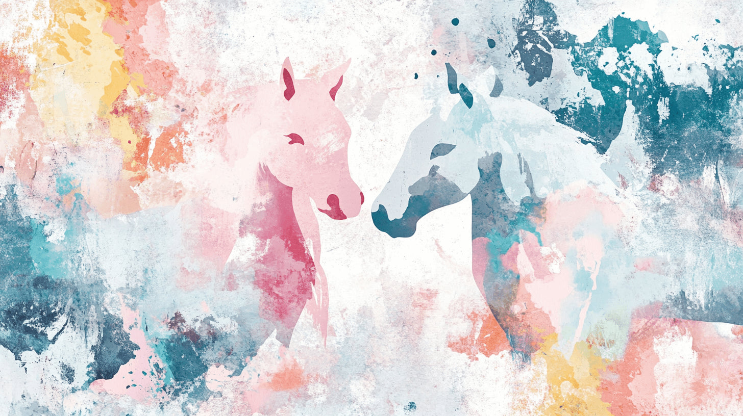 Paarden Mural Behang | Waterverf Roze en Blauwe Ontwerp