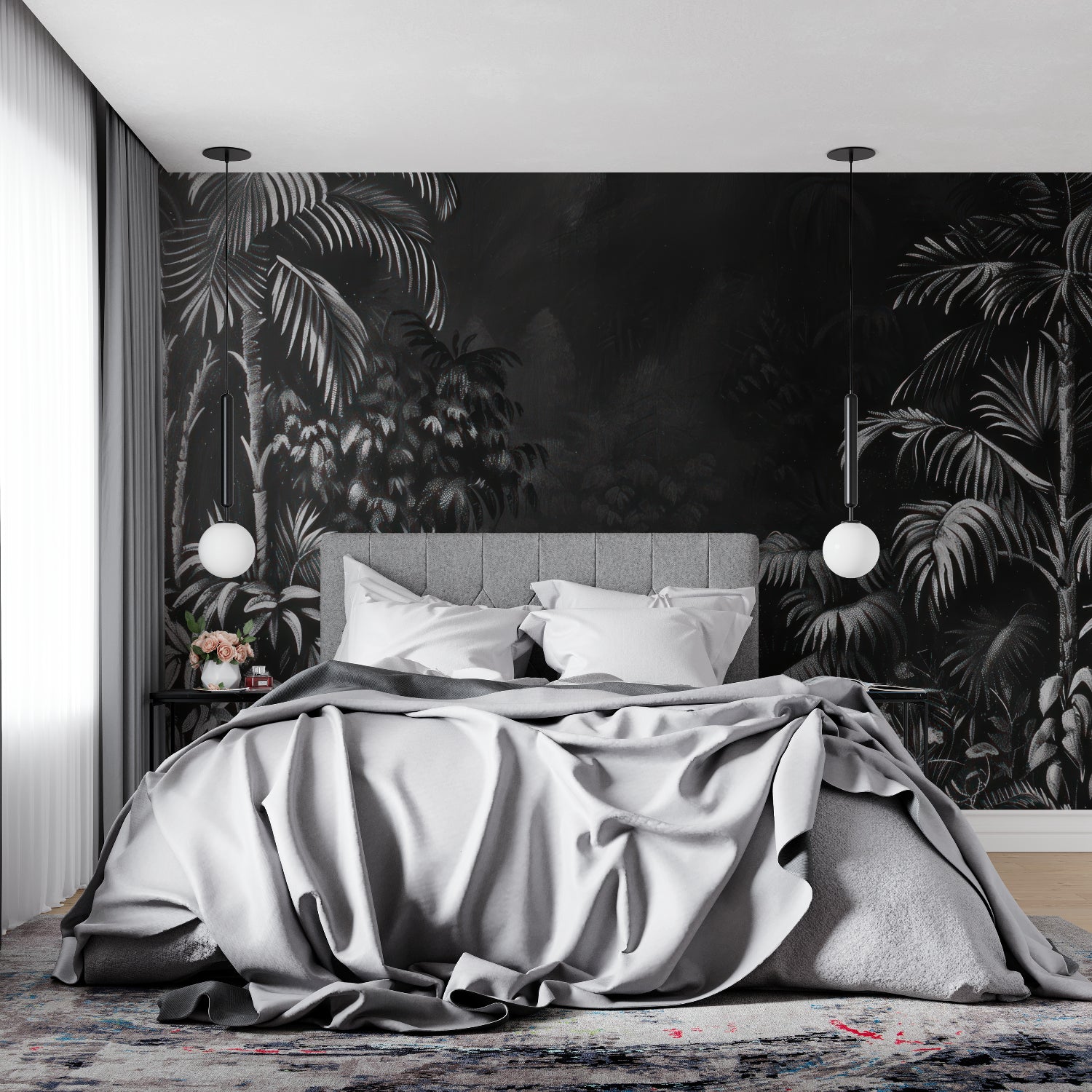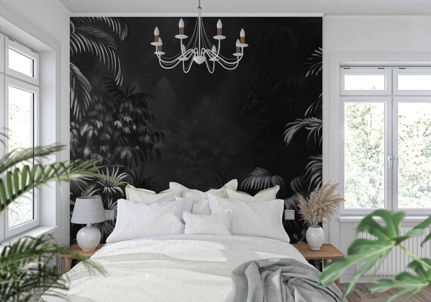 Transformeer je ruimte met dit zwarte junglebehang dat zowel drama als verfijning toevoegt aan elk interieur. De moderne tropische muurschildering creëert een meeslepende ervaring, perfect voor eigentijdse ruimtes die op zoek zijn naar die perfecte balans tussen gedurfd ontwerp en elegante terughoudendheid. De veelzijdige esthetiek werkt harmonieus met verschillende meubelstijlen en kleurenschema's, waardoor het een ideale keuze is voor het creëren van een verfijnde sfeer.