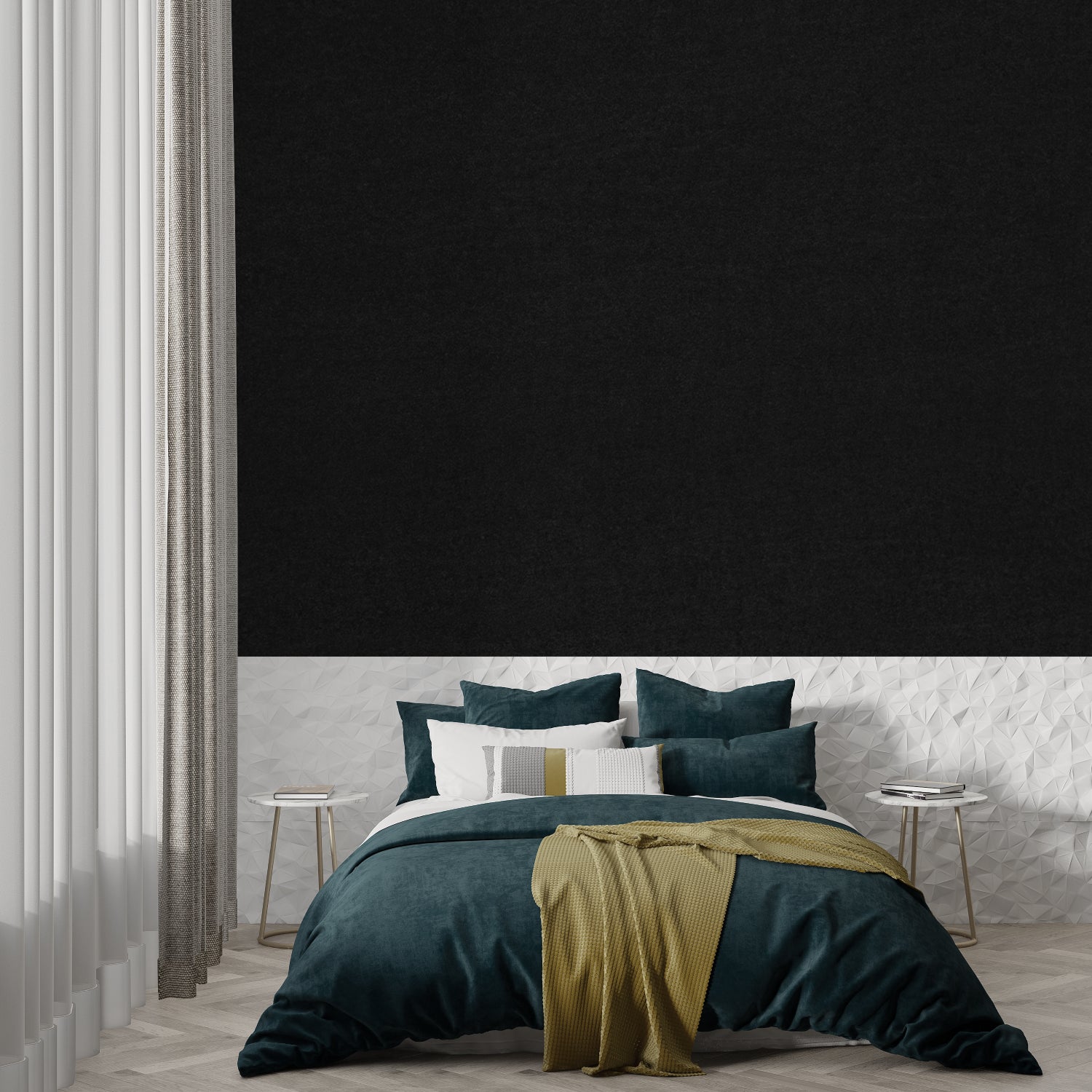 Deze zwarte muurschildering behang belichaamt verfijnde minimalisme met zijn diepe, rijke tint en gladde matte afwerking. De intense diepte van de moderne zwarte wandbekleding creëert een gedurfd canvas dat de aandacht trekt en tegelijkertijd een sfeer van ingetogen elegantie behoudt. De vlekkeloze oppervlaktestructuur voegt een subtiele dimensie toe die het licht prachtig vangt, waardoor een sfeer van verfijnde luxe ontstaat.