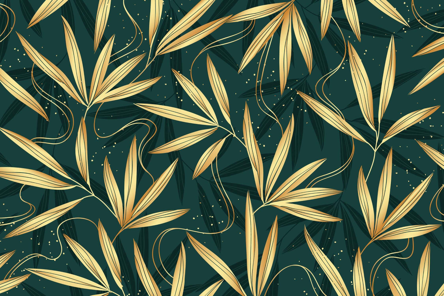 This bamboo leaf wallpaper transforms spaces with its golden glow.