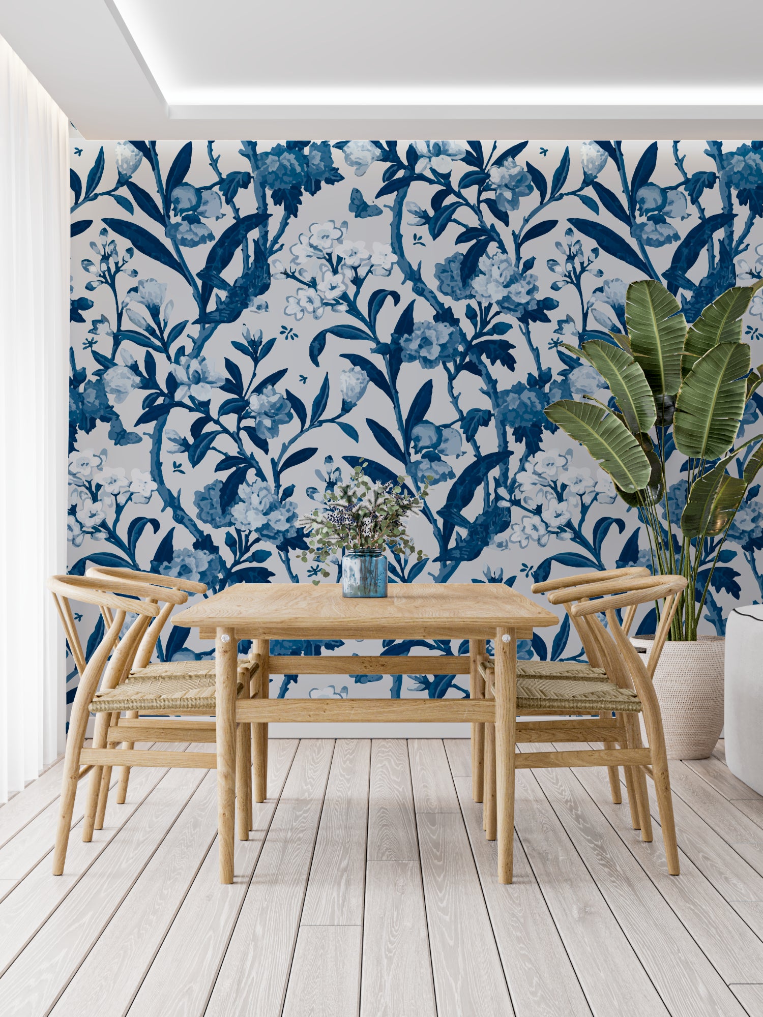 Let the gentle indigo blooms create a space that flows with natural grace and style.