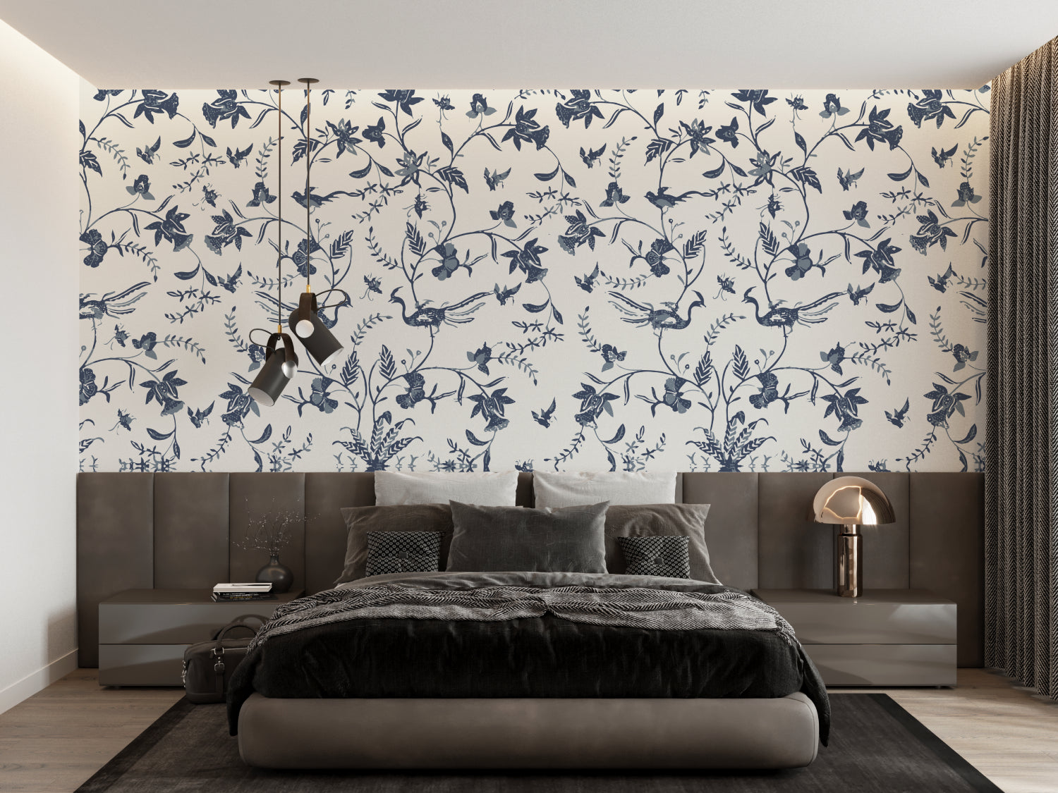 Forvandle rommet ditt med denne fuglemønster tapeten som bringer tidløs raffinement til ethvert interiør. Blomster-fugle tapet designet fungerer vakkert i både intime og sosiale rom, og skaper en atmosfære av diskret luksus og naturlig eleganse. Den allsidige fargepaletten tillater sømløs integrering med ulike dekorstiler, fra moderne minimalistisk til tradisjonelle møbler.
