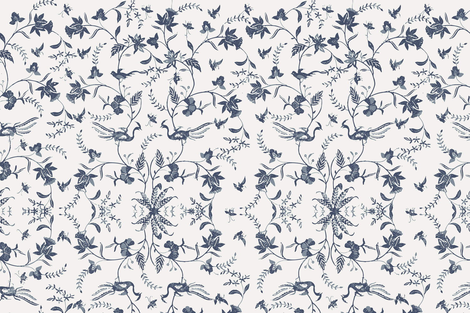 Blomstret Tapet | Mønster med blå fugler og blomster
