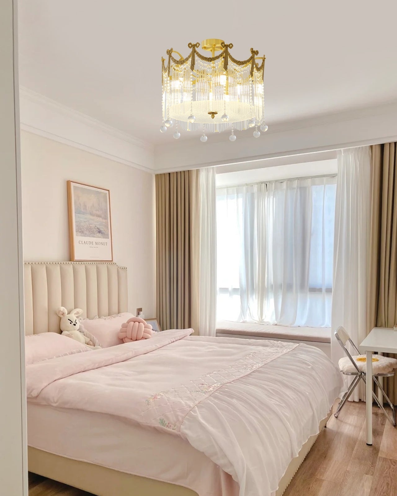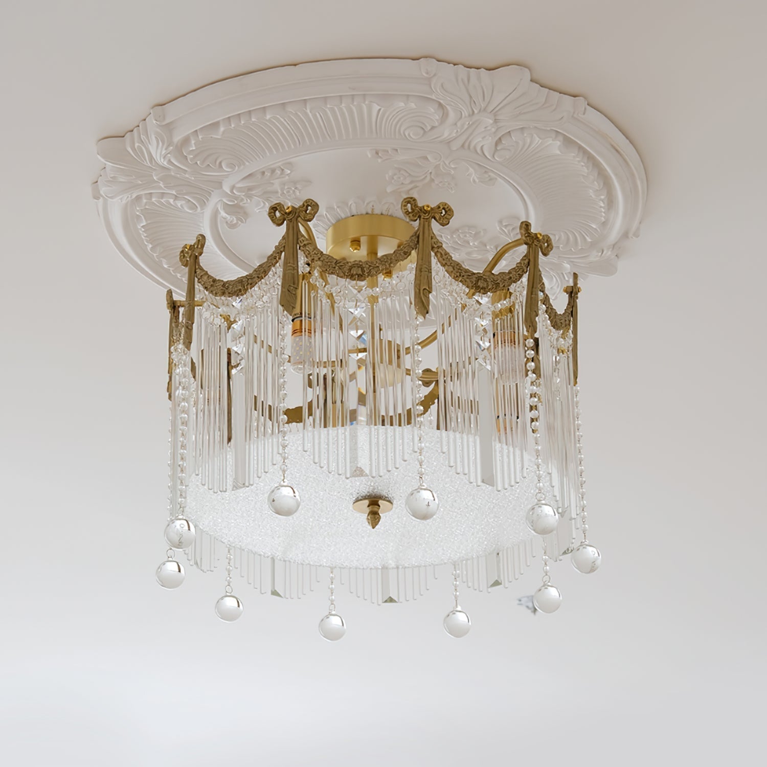 Fransk krystall taklampe | Messing krone design med vanndråper