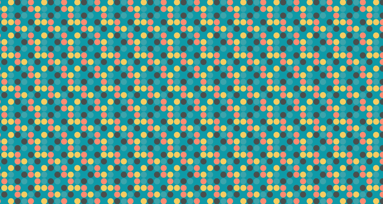 The mix of coral, yellow and charcoal dots creates a happy, welcoming feel.