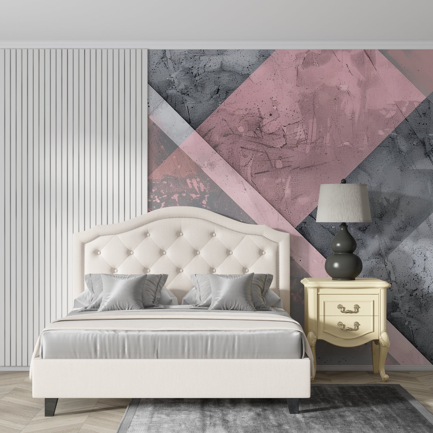 Geometrisk Tapet | Rosa og grå abstrakt design