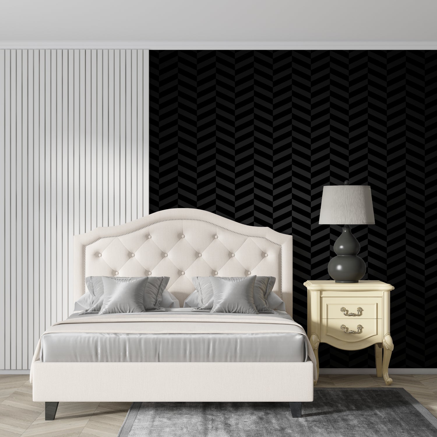 This black chevron wallpaper turns plain walls into stunning focal points.
