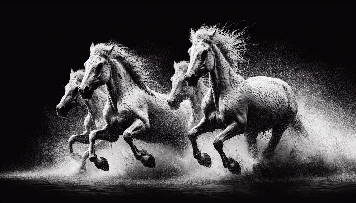 Hest Tapet | Svart og hvit dynamisk bevegelse