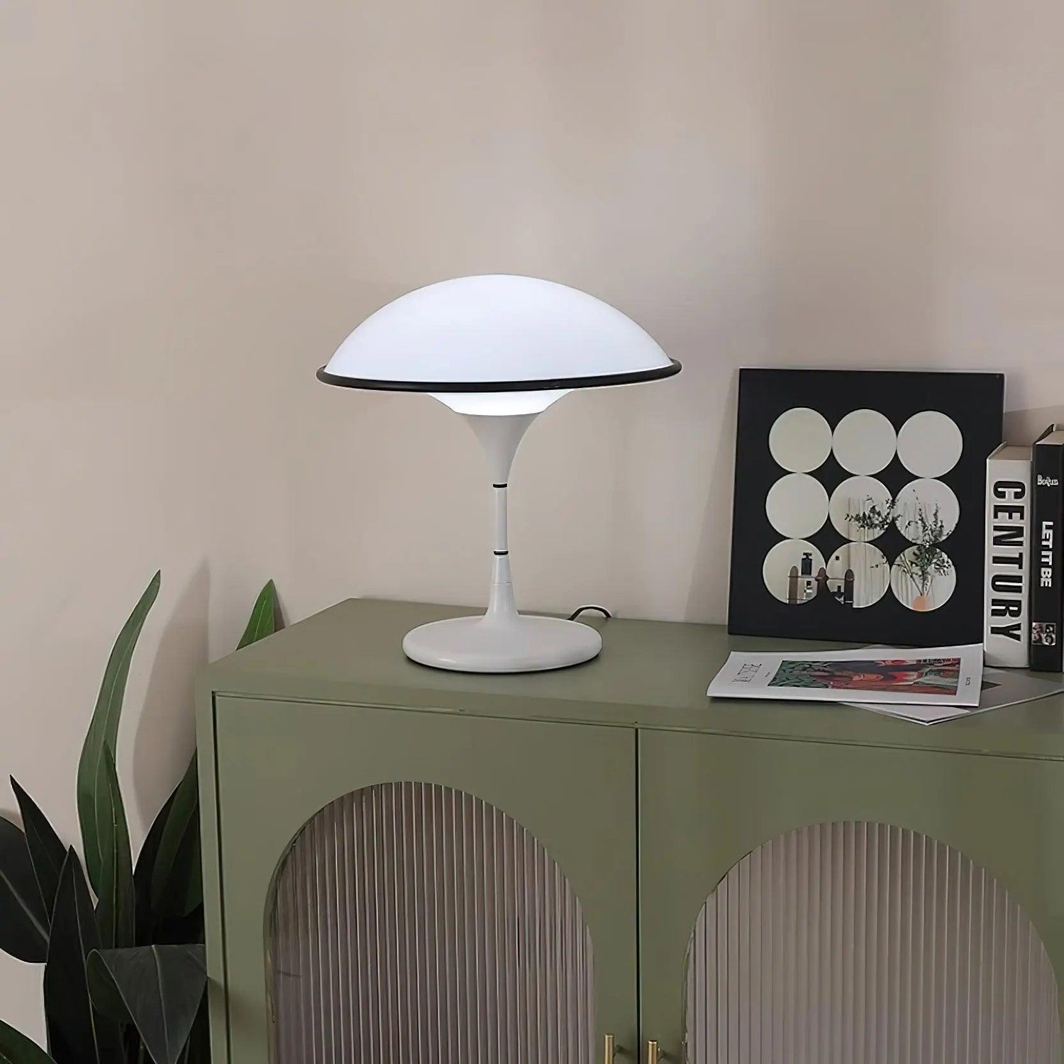 - Retro og moderne design: Bordlampen kombinerer retro sjarm med et moderne design. Den kuppelformede skjermen og den elegante svarte finishen gjør den til et stilig blikkfang i ethvert rom.