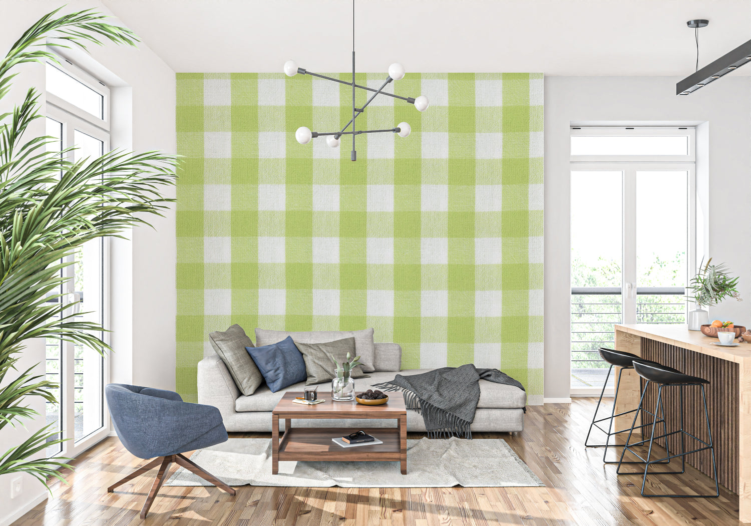 Forvandle rommet ditt med denne moderne gingham tapeten som bygger bro mellom tradisjonell sjarm og moderne stil. Den grønne geometriske tapeten gir en forfriskende atmosfære til stuer, soverom eller spisesteder, og skaper et miljø som føles både sofistikert og innbydende. Det allsidige designet komplementerer ulike interiørstiler, fra moderne minimalistisk til avslappet samtidsstil.