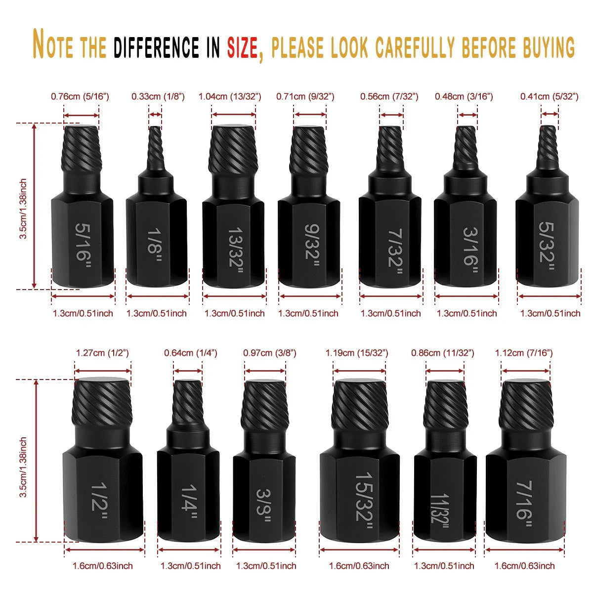 Kompatibel med både elektriske verktøy og håndverktøy, med høy tetthet spiraldesign for effektiv fjerning av brukne skruer, bolter, muttere, studs, beslag, gjengede rør og pinner.
