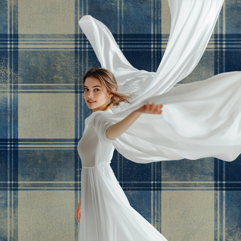 Denne vintage tartan tapeten viser et tidløst skotsk-inspirert design med sofistikert sjarm. Det klassiske rutemønsteret har dype marineblå toner harmonisk vevd sammen med myke beige nyanser, og skaper en raffinert visuell rytme. Hver linje er bevisst plassert for å danne et tradisjonelt rutemønster som gir dybde og karakter til ethvert rom, mens subtile værslitte effekter tilfører en autentisk vintagefølelse.