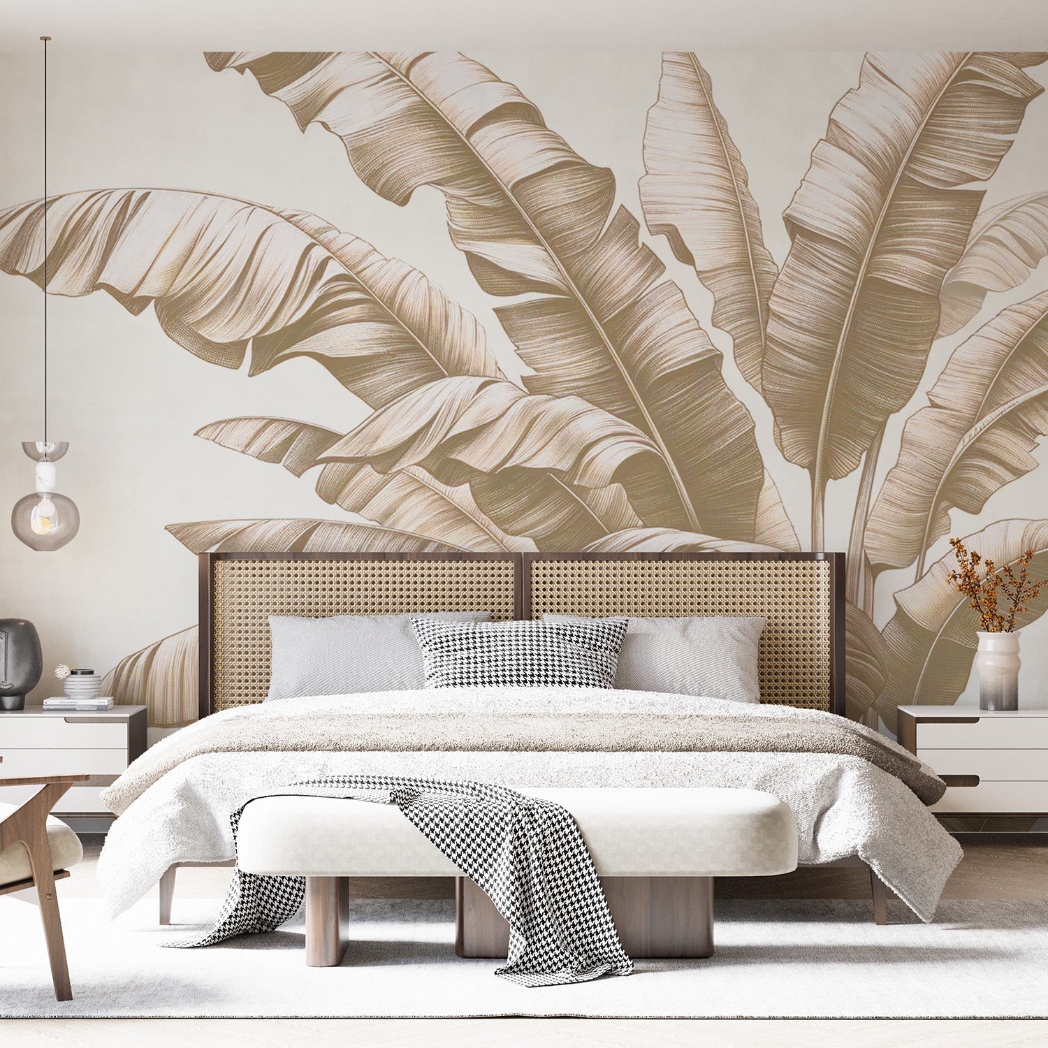 Our beige tropical wallpaper brings pure serenity to your walls.