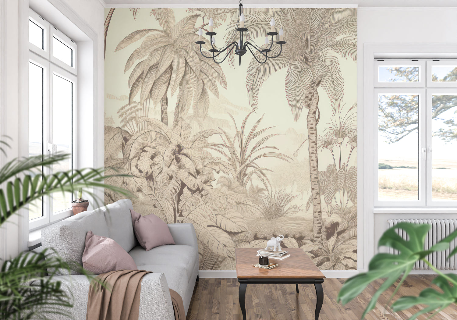 Tropisk Tapet | Beige Palmetrær og Naturscene