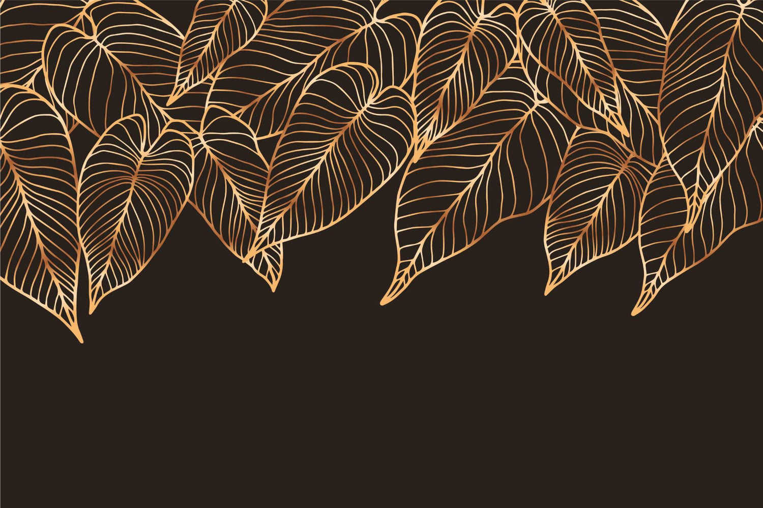 Tropisk Tapet | Mønster med svarte og gullblader
