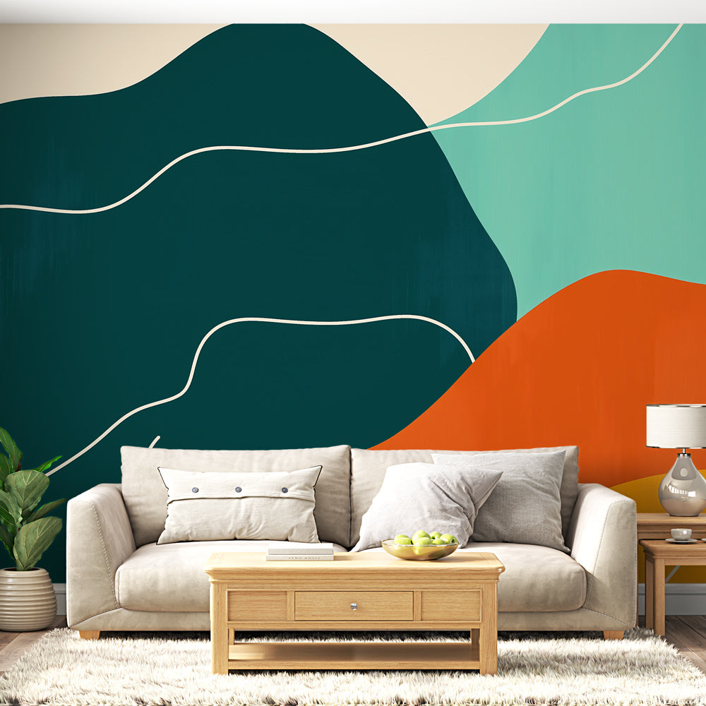 Abstract Mural Wallpaper | Organic Curves in Green and Orange